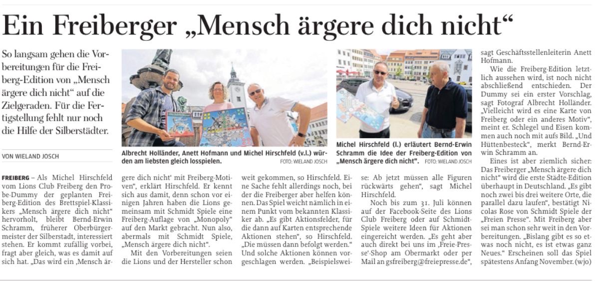 Zur Veröffentlichung dieser einzigartigen Mensch ärgere Dich nicht® Edition wird es ein ganz besonderes Ereignis geben: Die 1. Offiziellen "Mensch ärgere Dich nicht® Freiberg Edition Stadtmeisterschaften".
